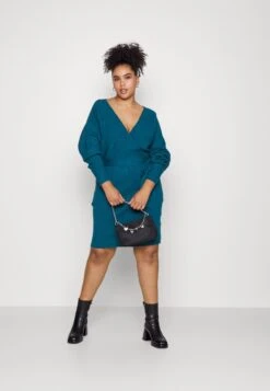 Wrap V Ausschnitt Mini Strickkleid Mit Gürtel – Gebreide Jurk – Teal
